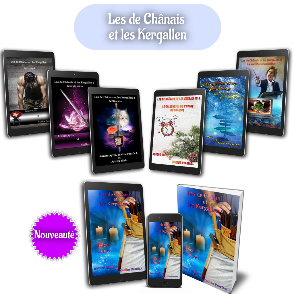 Prolongez le plaisir avec cette mini-série à quatre mains pleine d’humour : Les de Chânais et les Kergallen sur Amazon, sur Kobo, Apple books, Google livre !